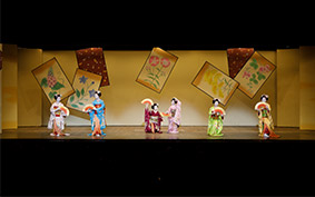 This show provides a great opportunity to enjoy seven traditional performing arts on one stage. The program is approximately one hour long and includes chanoyu (the art of preparing tea), koto music, ikebana flower arrangement, bugaku dance, kyogen comedy, and Kyomai dance. Depending on the season, a scene from bunraku puppet theater or a noh play is performed. The production is perfectly suited for travelers who are interested in the time-honored performing arts of Japan.